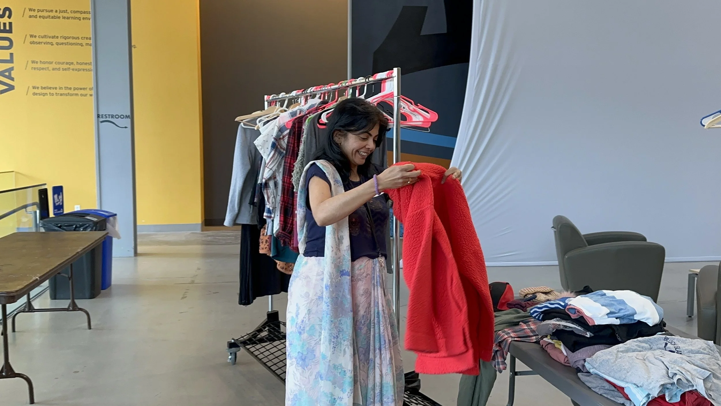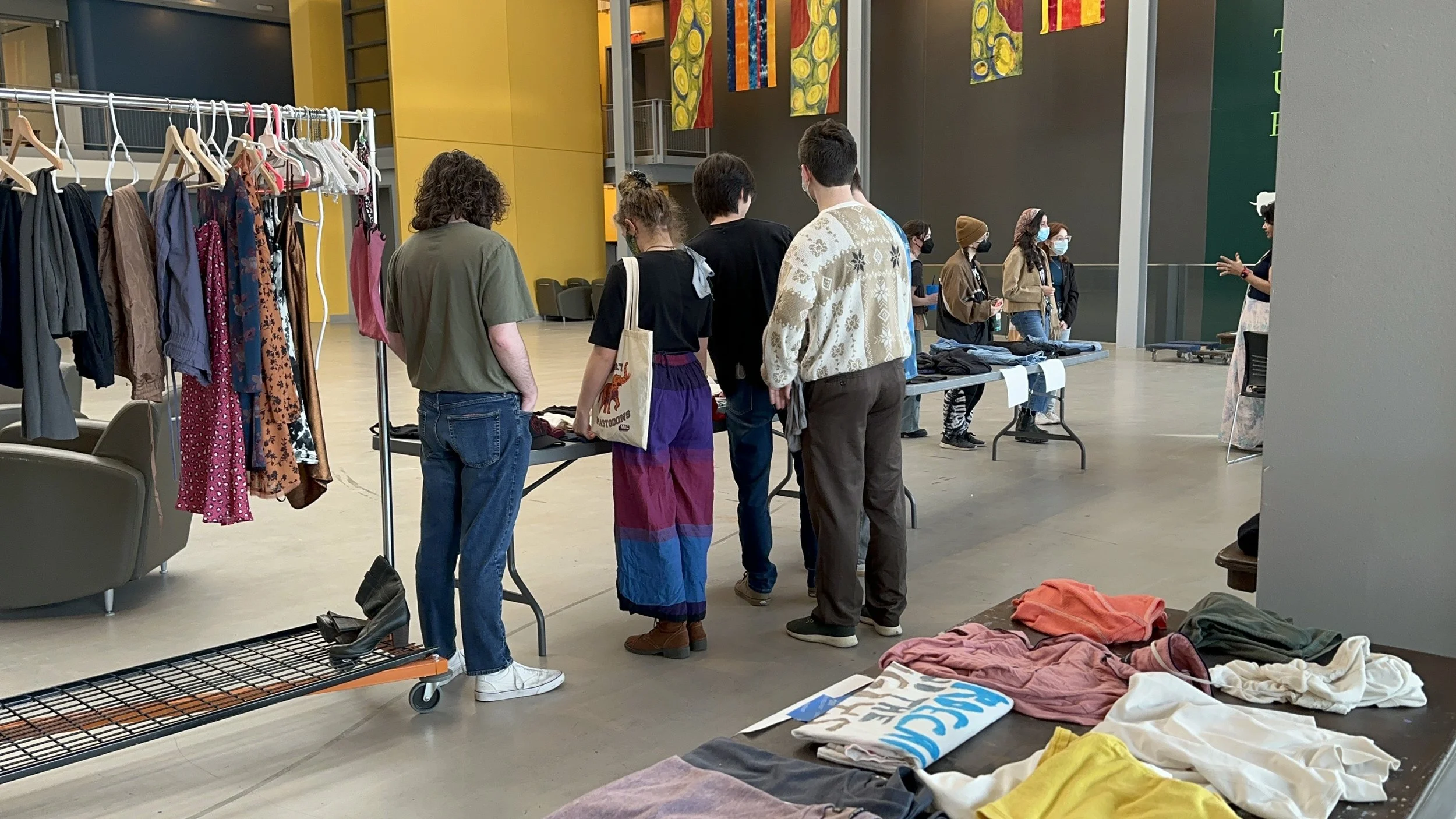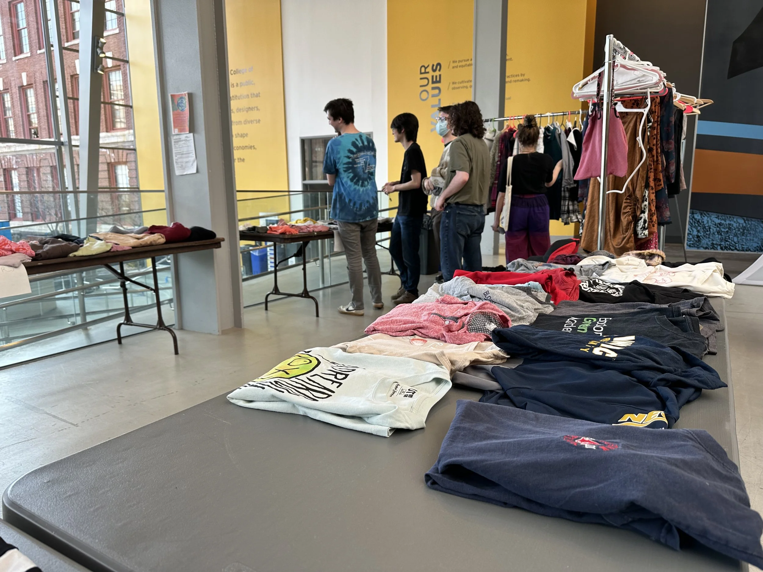 One way to reduce the strain on natural resources and keep clothing in use, for a longer duration, would be to participate in clothing swaps. They are fun to participate in, you get to pick something unexpected, all without spending more money. As part of my Sustainability mini grant, I recently organized a clothing swap at our school MassArt. With Lillian and Monica’s help, we set up racks and tables with donated items: a few shoes & bags, some jackets, skirts & dresses, lots of tops and pants. Tina had set up a mending station in case needed. More than 50 people participated. This was the first swap most of the attendees had ever been to. The feedback received is for more clothing swaps on campus, which is very encouraging. And many of you know how to mend clothes, that’s another great way to keep using our clothes for much longer.