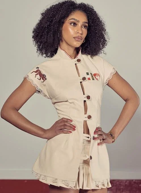 A:When it comes to seeking inspiration with any of my work, I feel like there is a lot going on up here (points to brain). I pull from so many different aspects, and the way it works with me is I will pull from something I’ll be like Okay I kinda wanna get inspired by my roots, I wanna get inspired by something more related to the arts and culture in brazil, because that is where me and my family are from. So I will think of one Idea and then it will kinda be like the snowball effect but a good snowball effect. I will be like I thought about this- what fabric am I going to use for this look.